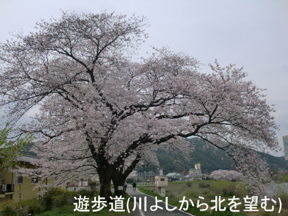 今回は,嵐山から京都府南部の木津川市まで続く遊歩道の中の阪急松尾駅から南に向かって割烹”川よし”までの区間に見事に咲いていました(撮影は4/4)。
