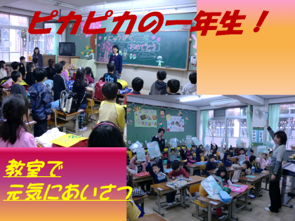新1年生も今日から集団登校で学校に来ました。雨がパラパラ降る中,元気に高学年に連れられて登校しました。教室でもあいさつの元気な声が聞こえてきました。