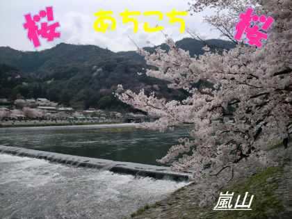 校庭の桜のちらほらと散り始めました。シリーズ『桜あちこち』も今回が最終回となります。最終回は,京都の名勝嵐山です(撮影4/4)。