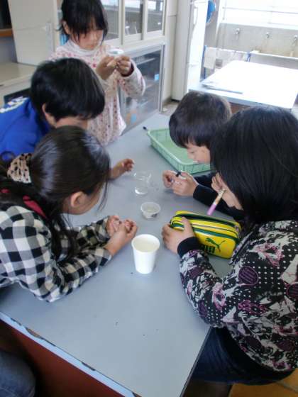 今日の授業では『空気と適温が必要かどうか』について班で話し合い、それぞれの班で考えた方法で実験しました。