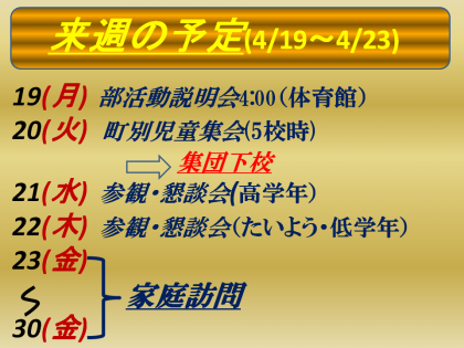 4/20(火) 町別児童集会5校時・・・このあと集団下校