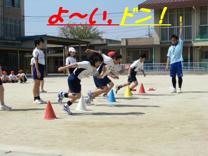 今日の昼からの運動場は,6年生の50m走でした。2回ずつ走って,そのタイムを記録します。もう運動会に向けて走り出しています。