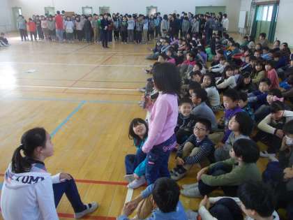歌声を聴きあった感想や歌い方についての意見を交流した後,教職員の合唱も聴きました。学年を指定して歌うことにより,他学年の歌声の良さを感じ合って学ぶことができました。