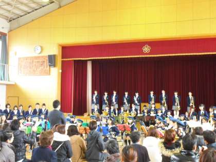 ・3月8日(日)午前10時30分から,金管バンドのお別れコンサートを行いました。桂中学校の吹奏楽部が友情出演で駆けつけていただき。盛り上がった演奏会になりました。