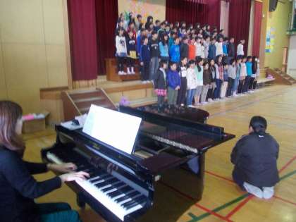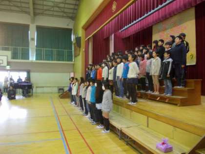 お礼を込めた6年生からの出し物です。4年生以下にとっては,卒業生の歌声を聞くのは最後の機会かもしれません。