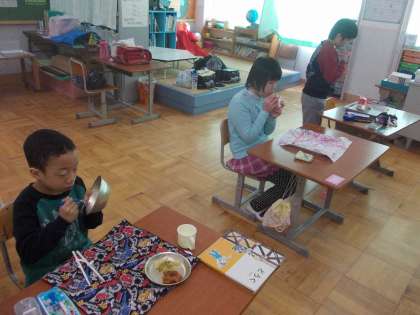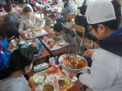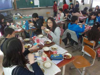 6年生を送る会の直後の献立は『卒業祝い』でした。6年生が和やかに給食を楽しむ様子の写真を撮りに行ってきました。