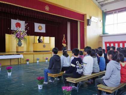 学校長式辞の様子です。