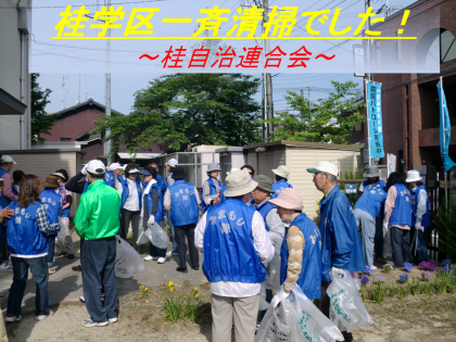昨日の日曜日は,桂学区の一斉清掃日でした。ふれあいサロン前には桂自治連合会を中心にPTAや各種団体の皆さん方が集まって約1時間の清掃活動に汗を流しました。