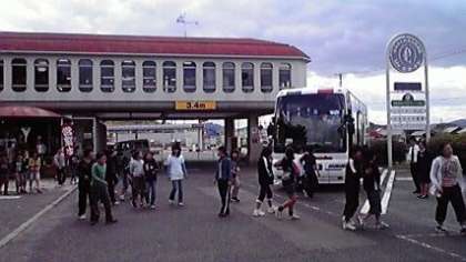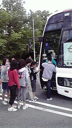 昼食が終わって いよいよ帰路につきます。バスに乗り込んで,楽しかった思い出と一緒に,さあ,家路に!