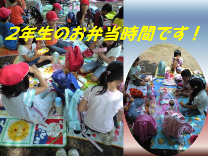 美味しいお弁当の時間です。写真は2年生の子どもたちが美味しくいただいているお弁当スナップです。