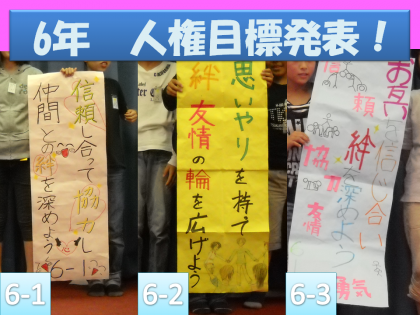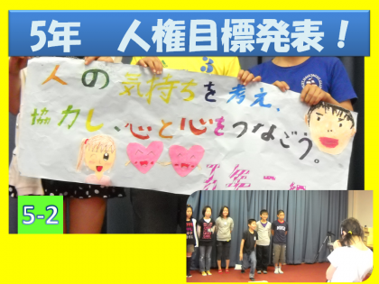 昨日のお昼の放送で、高学年も人権クラス目標を発表しました。