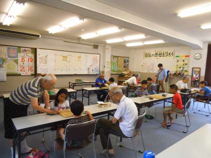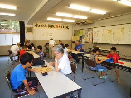 ・8月8日(土)午前9時から,ふれあいサロンに於いて「夏休みの将棋教室」を行いました。夏休み中にもかかわらず,たくさんの子どもたちが,地域の指導者のみなさんに将棋を教えていただきました。
