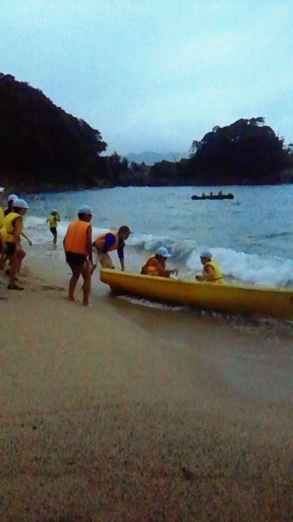 ・午前の活動は,昨日雨で出来なかった選択活動に取り組みました。少々高い波でしたが、それぞれの活動を楽しみました。