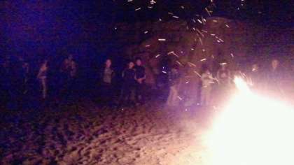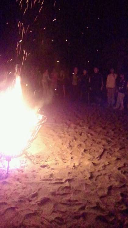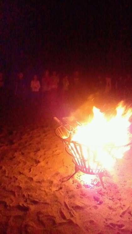・長期宿泊の最後をかざるキャンプファイアーです。子どもたちの歌声や歓声が夜空に響いています