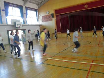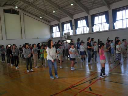 年に一度のふれあい活動がありました。運動会の準備体操のダンスを親子いっしょにおどるところからスタートし、和やかな雰囲気になったのですが、次の大縄跳びでは、八の字とびをぴょんぴょん上手に跳ぶ子どもたちに保護者の方々はびっくりされていました。ところが・・・保護者の皆さんも真剣な表情で、子どもたちに負けじとぴょんぴょん跳んでおられて子どもたちも「うまいやん」と感心していました。