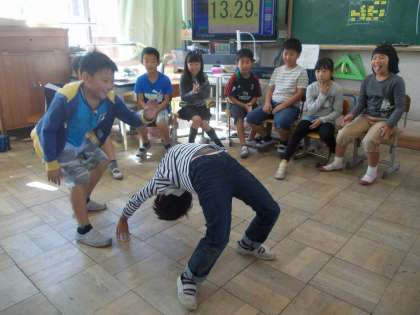 学級活動の話し合いでゲームを決めました。前期末を迎えて,「もっと楽しいお楽しみ会」のゲームは,フルーツバスケットでした。みんなで楽しみ,3回負けた子どもは「一発芸」を披露しました。