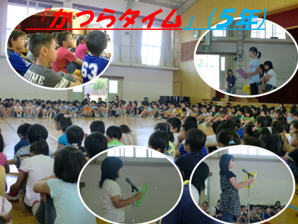 今日は今年最初の「かつらタイム」がありました。第1回目は,5年生の発表です。テーマは,”運動会で成長したこと”です。組体操で,みんなが一つになって成功したことから自信が生まれたり,責任感が芽生えたりしたことを発表してくれました。フロアからの意見交流も活発に行えました。