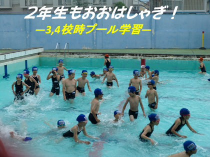 1年生に続いて,2年生も3,4校時にプール学習が始りました。1年生の歓声を教室で聞いていて,早く入りたい気持ちがプールサイドでは一気に弾けました。