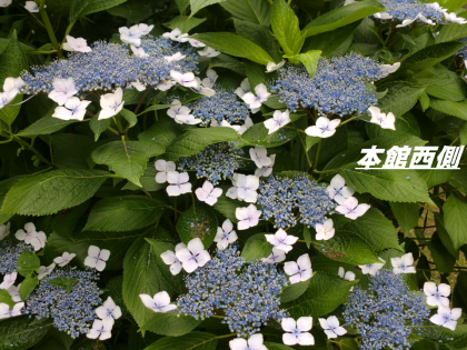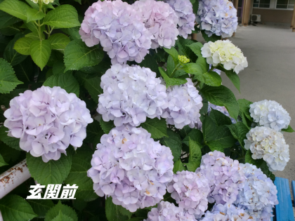 アジサイの花が綺麗に様々な色を付けてきました。学校にも玄関前だけでなく,本館の西側にはガクアジサイも綺麗に咲いています。大原野にある善峰寺の1万本のアジサイには驚愕させられました。是非一度訪れてみて下さい。