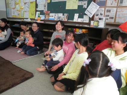 読みきかせをしたあと、赤ちゃんのお母さんと交流しました。赤ちゃんの名前を教えてもらい、だっこも緊張しながらさせていただきました。