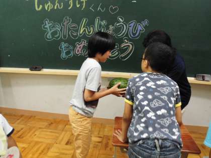 スイカの重さに驚きつつ、喜ぶこどもたちの顔が輝いていました!