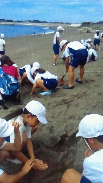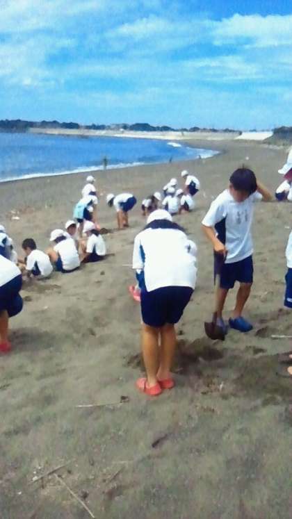 ・4年生はみさきの家での天候にも恵まれ、予定通り大野浜で砂の造形作りに挑戦しています。