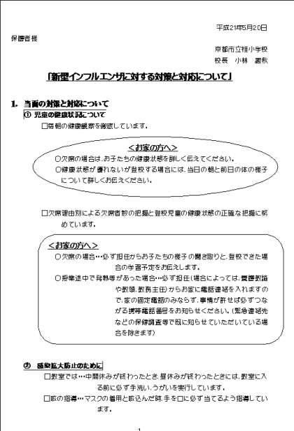 新型インフルエンザについて,本校では以上のように対策をとっています。