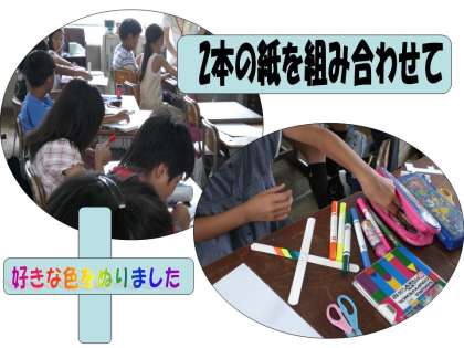 4年は,それぞれの学級で健康の様子を確かめた後,画用紙でブーメランを作りました。思い思いの色や模様をつけて,体育館の中で思いっきり飛ばしました。なかなか思うように戻ってきませんでしたが,追いかけては歓声をあげる元気な子どもたちでした。5年生は,学年集会のあとゲームを楽しみました。その後は,畑に植えた『大豆』の周りの雑草を抜いたり,手入れをしました。秋には実がたくさんできるように!!