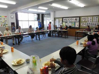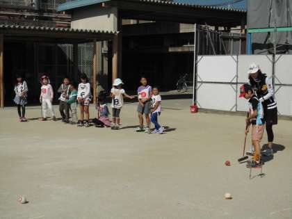・10月16日(日)午前中,少年補導「地域ふれあいレクリエーション」がありました。運動場で地域のお年寄りの方と一緒にゲートボール体験を行い,お昼はふれあいサロンで少年補導が用意してくださったお好み焼きと焼きそばをいただきました。