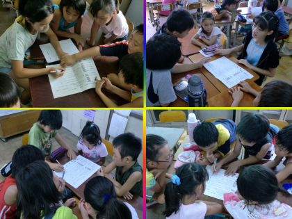 9/8(水)に縦割りグループで各遊びコーナーを回って楽しむ夏の集会があります。それに向けて,今日午前中に各縦割りグループで話し合いがありました。6年生が下級生を上手にリードして微笑ましい光景でした。子どもたちは本番をとても楽しみにしています。