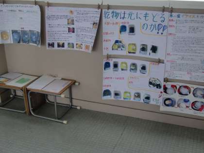夏休みに取り組んだ自由研究の発表会を各クラスで行いました。他クラスや他学年にも見てもらえるよう、本館4階の理科室前廊下に掲示しています。
