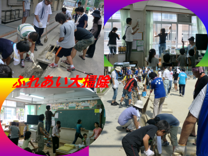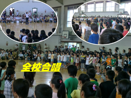 9/11(土)は,休日参観日でした。授業参観のあと中間休みには,体育館で保護者,地域の皆さん方に本校が頑張っている”全校合唱”(『虹』,『コスモス』)を聞いてもらいました。その後,保護者,地域の皆さんと子どもたち,教職員による”ふれあい大掃除”を行いました。教室や廊下,本館・体育館回りの側溝の掃除などに貴重な汗を流していただきました。ありがとうございました。