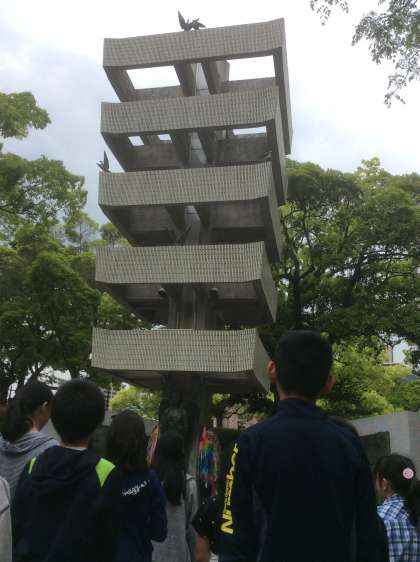 平和記念セレモニーを終えて語り部さんからお話を聞きます