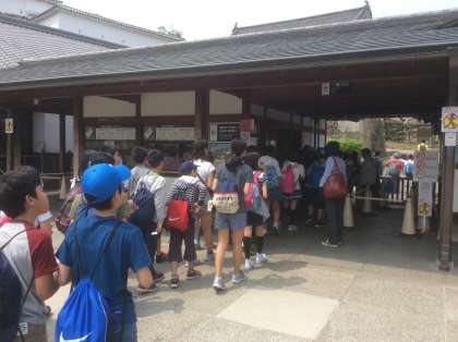 ・姫路城前広場でお弁当を食べた後,6年生は姫路城の内部に入り,見学を行いました。
