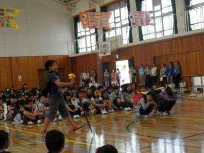 4・5年生は,1年生を守る隊に扮した子どもたちが1年生をはげましてくれました。心強いですね。緊張していた1年生の顔がほころんでいました。