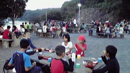 活動がおわって夕食の時間となりました。深谷水道沿いの野外炊事場で 夕食をいただきました。太陽が沈む様子を眺めながら,おいしくいただいています。今日は,この後,肝だめしがあります。暗闇の中の様子は,ちょっとお伝えできません・・・で,「みさきの家News」は今日はここまでといたします。また 明日 連絡を受け次第お伝えいたします。