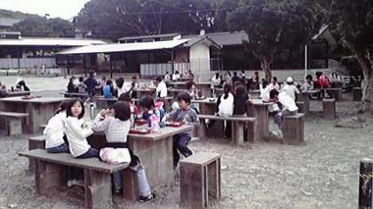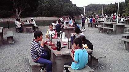 磯での活動が終って,お腹がすいて昼食をおいしくいただきました。空は,少しずつ曇ってきましたが,みんな とっても元気です。