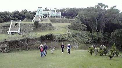 午後の1番の活動は,浦山ラリーです。大きなアスレチックによじ登り 大喜びです。