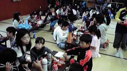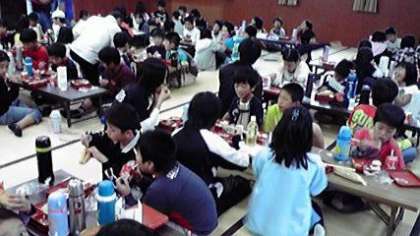 朝食は,90畳の部屋でいただきました。グループごとにテーブルを囲み,2日間の思い出や,この後の鳥羽水族館の計画を話しているのでしょう。さあ,食事の後は大掃除です。