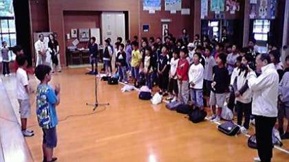 退所式を行いました。あっという間の2日間でしたが,たくさんのことを学ぶことができました。この後は,荷物をバスに積み込んで,次なる活動場所へ出発です。