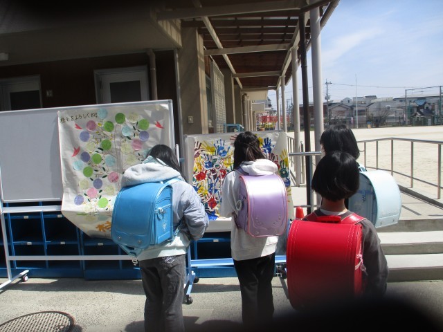 卒業生のみなさんが在校生に託したメッセージを体育館前に掲示しました。