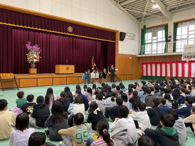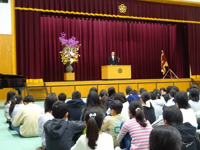 校長先生から、「みなさんは今日から一つずつ学年が上がりましたね。学年が上がりどのように感じているのか、改めて自分の心と対話してみましょう」というお話がありました。その後、それぞれの学年の学習や頑張って取り組んでほしいことなど、学年ごとに向けてメッセージもいただきました。
