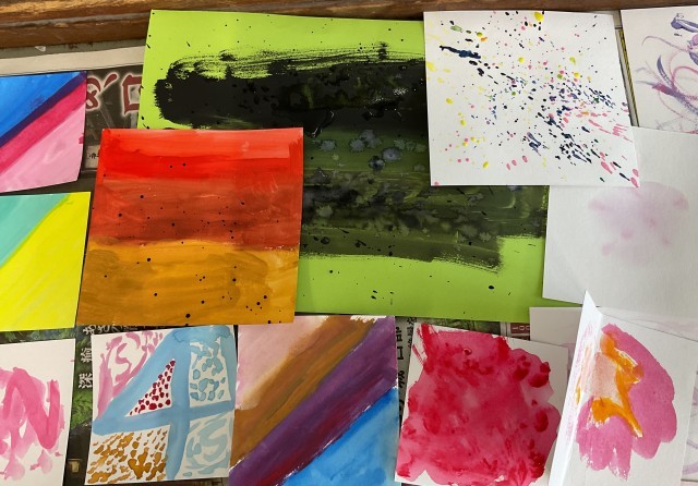 図画工作科の時間に「心のもよう」を、絵の具を用いて表しました。水の量や色の明るさや塗り方などを工夫して、様々な「心のもよう」を豊かに表現していました。
