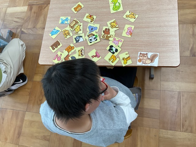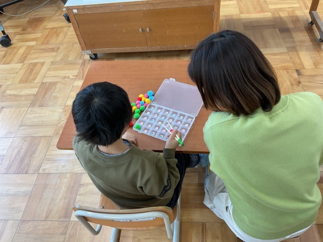 自分でやりたいことを選び、それぞれが選んだ学習に取り組みました。パズルをしたり、絵合わせをしたり、はしでつまんだりするなど、それぞれが集中して行うことができました。これからも自分で選んで学ぶ力をつけていきたいです。