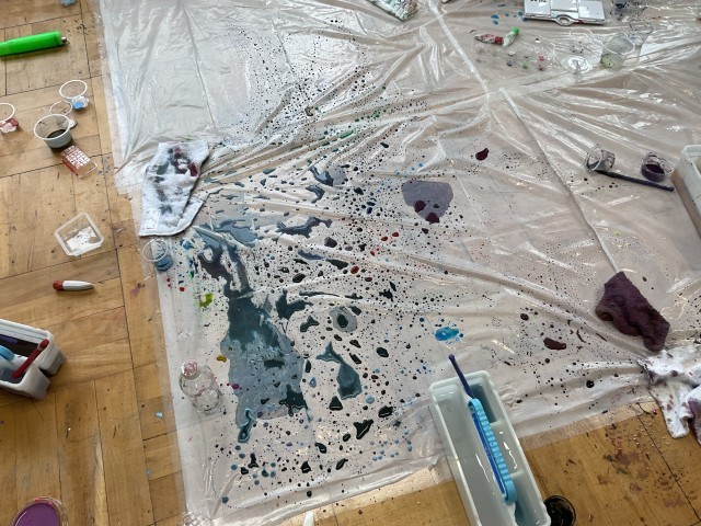 絵の具を使って、水の量や大きさ、色を試して「きれい」をたくさん見つけました。