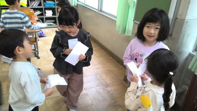 「隣のクラスのお友だちと仲良くなりたいね。」という気持ちがあったので、生活科の「なかよしいっぱい」でも、名刺を交換しようということになりました。