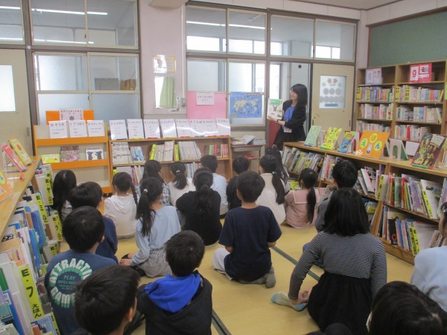 4年生は、国語の時間に百科事典の使い方を学習するので、百科事典も紹介していただきました。