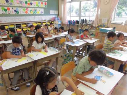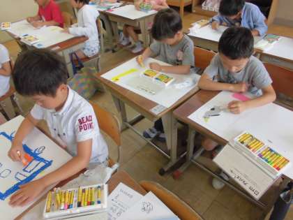 図画工作では,遠足で行ったときのことを絵に描きました。