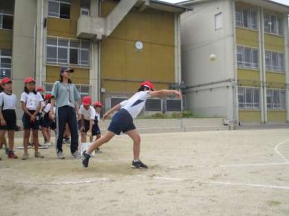 少しでも遠くに投げようとがんばる姿が,とてもすてきです。