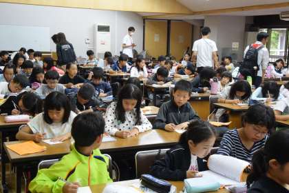 夕食の後、第1研修室で家族への手紙を書いています。おうちを離れて生活し,おともだちとの生活、様々な体験をした中で,それぞれ思い思いのメッセージを書いています。